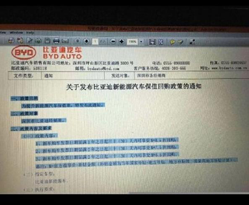 目前,新車回購整車政策貌似只針對于深圳經銷商,比亞迪官方也并未正式向外界公布這一消息,因此新能源車回購政策否會在全國范圍內推行還有待進一步考證。