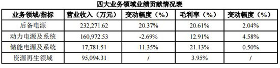 報告期內,電動自行車用動力電池業務全年實現營業收入150,893.68萬元,同比下降6.58%,對公司的業績貢獻同比下降。主要原因是該領域的價格戰仍在持續。