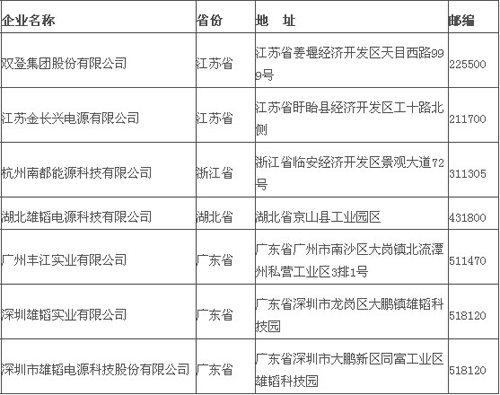 第二批符合《鉛蓄電池行業準入條件》企業名單