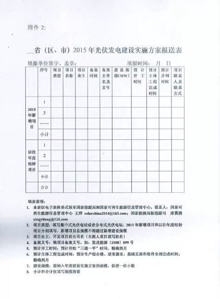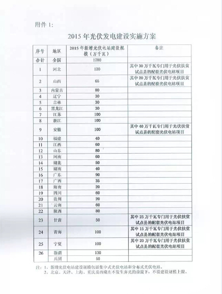 國家能源局關(guān)于下達(dá)2015年光伏發(fā)電建設(shè)實施方案的通知