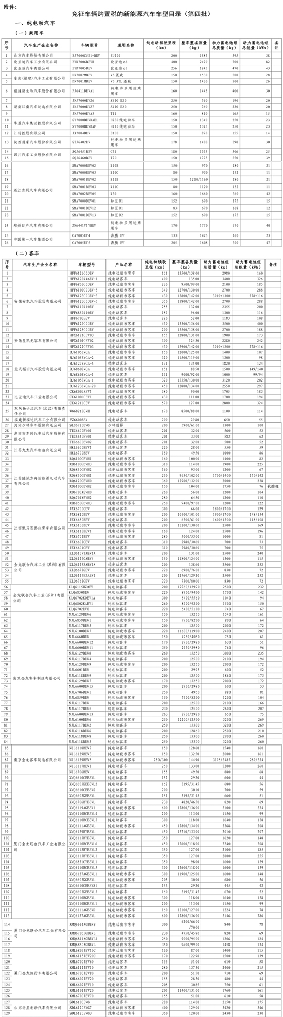附件:免征車輛購置稅的新能源汽車車型目錄(第四批)