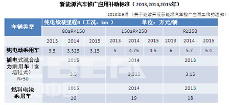 目前執行的新能源汽車推廣應用補助標準是參考《關于繼續開展新能源汽車推廣應用工作的通知》制定的,并且實現退坡機制,即2014年在2013年標準基礎上下降5%,2015年在2013年標準基礎上下降10%;2015年底補貼政策到期后,中央財政將繼續實施補貼政策。