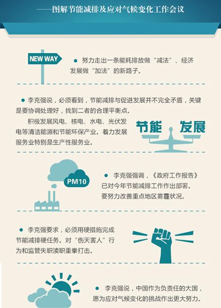 日前,中共中央政治局常委、國務院總理李克強主持召開節能減排及應對氣候變化工作會議,推動落實《政府工作報告》,促進節能減排和低碳發展,研究應對氣候變化相關工作。中共中央政治局常委、國務院副總理張高麗出席會議。