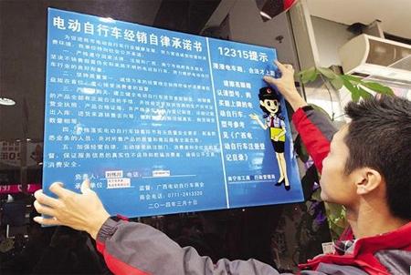 據(jù)了解,“自律承諾書”牌匾由南寧市政府部門制作并發(fā)放,廣西電動自行車商會行使監(jiān)督權(quán)。首批34家獲權(quán)經(jīng)銷商均是當(dāng)?shù)氐谝慌雵鷱V西質(zhì)監(jiān)部門制定的《廣西電動自行車注冊登記目錄》經(jīng)銷商。相關(guān)負(fù)責(zé)人表示,雖然“自律承諾書”不是法律法規(guī),但也是商家誠信的體現(xiàn),同樣可以起到監(jiān)督和約束的作用。下一步,將把電動車經(jīng)銷商誠信度納入南寧市誠信體系。而消費(fèi)者在購車時,可通過目錄了解車輛參數(shù)是否達(dá)標(biāo),也可留意商家是否備有“自律承諾書”,以進(jìn)一步了解其經(jīng)營資質(zhì)和售后情況。