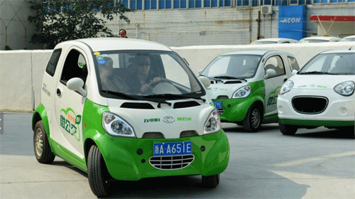原來,這些可以對外租賃的“微公交”都是純電動汽車,在傳統汽車加油口略下方的位置是充電口,有兩座和四座兩種車型。而這樣的“微公交”,充一次電能跑60公里左右。