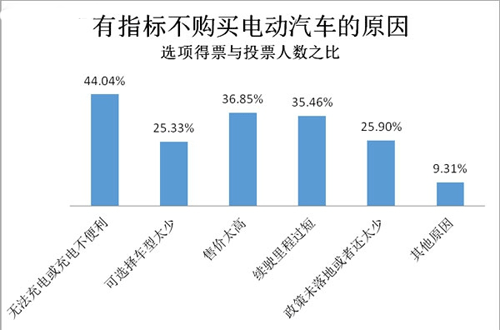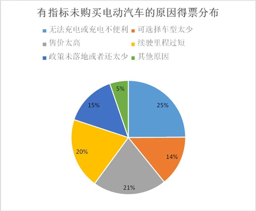 既然申請了新能源小客車購買指標,為何又不買車?調查發現,無法充電或充電不便利是阻礙購買電動車的最主要障礙,在諸多原因中占比25%。其他重要的原因是售價過高、續航里程過短,占比分別為21%和20%。