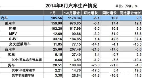 上半年,汽車(chē)產(chǎn)銷(xiāo)1178.34萬(wàn)輛和1168.35萬(wàn)輛,同比增長(zhǎng)9.60%和8.36%,與上年同期相比,增幅有所減緩。其中乘用車(chē)產(chǎn)銷(xiāo)970.85萬(wàn)輛和963.38萬(wàn)輛,同比增長(zhǎng)12.05%和11.18%;商用車(chē)產(chǎn)銷(xiāo)207.49萬(wàn)輛和204.97萬(wàn)輛,同比下降0.59%和3.18%。
