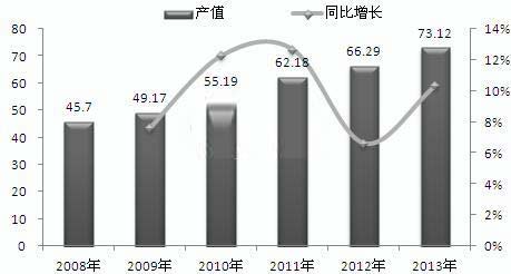 從UPS的國內市場規模來看,近年來國內UPS市場銷售額逐年增長。2009年為57億元,2010年達到64億元,2013年約為80億元,同比增長6.67%。