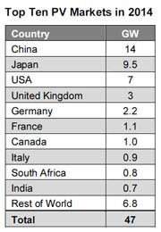 Bernreuter Research2014年全球十大光伏市場(chǎng)預(yù)測(cè)排名