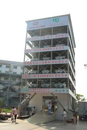 2013年,杭州首座純電動汽車智能充換電立體車庫建成。立體車庫由浙江康迪車業有限公司和浙江鐳蒙機械設備有限公司聯合研發,目前停放的車輛全部為康迪車業生產的電動汽車。整個大樓有兩排5層的立體停車位,一共可容納30輛車同時充電。按照技術人員的說法,每次充電30分鐘。這座立體車庫及它的周邊場所,一共可停100輛電動汽車。