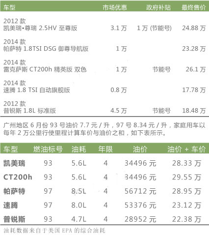 單從油價計算,帕薩特在4年之后綜合成本已經(jīng)超過凱美瑞·尊瑞,普銳斯也在使用成本環(huán)節(jié)反敗為勝。