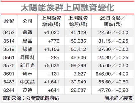 新日光、昱晶、茂迪、益通、升陽科等電池廠受此次美方課征重稅影響最大,上周一度傳出業者遭課稅率偏低,市場出現押寶行情,根據統計,上周融資除碩禾和升陽科逆勢減少外,其余個股融資都增加,以新日光大增5,636張最高,此次利空超乎市場預期,今天恐出現失望性賣壓。