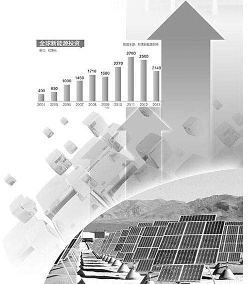 新能源投資的大幅度增加是全球新能源裝機(jī)規(guī)模快速攀升的直接驅(qū)動(dòng)力。近10年來,全球主要國(guó)家出于可持續(xù)發(fā)展和保障能源供給安全的考慮,均將大力發(fā)展新能源納入國(guó)家發(fā)展戰(zhàn)略。尤其是2008年國(guó)際金融危機(jī)以來,大力發(fā)展新能源成為世界主要經(jīng)濟(jì)體應(yīng)對(duì)危機(jī)的重要舉措和手段。在此背景之下,截至2011年,全球新能源投資達(dá)2790億美元,是2004年的近7倍。根據(jù)國(guó)際能源署近期發(fā)布的《世界能源投資展望2014》,至2035年,全球近10萬億美元的發(fā)電投資中,可再生能源將占6萬億美元。