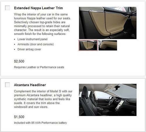 特斯拉目前在美國市場的銷售模式相當透明,各種選配件清晰明了,消費者可以選到符合自身需求的車款,包括碳纖維尾翼、紅色四活塞Brembo卡鉗、快速充電器、LED日行燈、LED轉向燈、電動收折后視鏡、Nappa真皮內飾、車內LED氣氛燈等,這些都能加價選配。