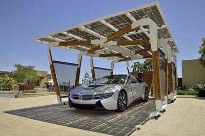 6、太陽(yáng)能車棚電動(dòng)汽車沒(méi)電了?來(lái)個(gè)太陽(yáng)能車棚試試。現(xiàn)在讓我們來(lái)看看一款高端大氣上檔次的太陽(yáng)能車棚吧。寶馬大概覺(jué)得自家的i系列車型太過(guò)華麗,需要配備專屬的車庫(kù)才行,于是他們?yōu)閕系列車型設(shè)計(jì)了專門的太陽(yáng)能車庫(kù)。為秉承電動(dòng)汽車的環(huán)保理念,這款太陽(yáng)能車庫(kù)采用竹制及碳纖維骨架,車庫(kù)頂部則是半透明的太陽(yáng)能電池板。主要陽(yáng)光充足,車庫(kù)吸收的太陽(yáng)能就足夠i系列車型充電,多余的部分甚至可以貼補(bǔ)家用。另一個(gè)方面,這款車庫(kù)的壽命長(zhǎng)達(dá)30年左右,所以說(shuō)一次投資受益還是頗久的。這么酷炫的車庫(kù),看著還是挺爽的,可咱老百姓沒(méi)那么大能力去消費(fèi)呀。