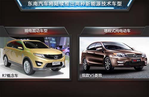 [摘要]東南汽車正在研發(fā)增程式電動車與插電混動技術,增程式電動車將基于V5菱致開發(fā),續(xù)航里程可達到460公里,另外,今年四月發(fā)布的R7概念車將采用插電式混動技術。