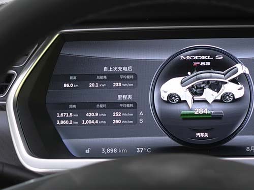 特斯拉的電池及續航管理界面