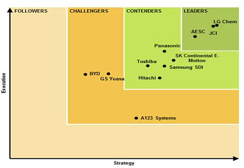 在美國咨詢公司Navigant Research的全球十大鋰離子電池供應商排行榜中,韓國LG化學排名第一,三星也榜上有名。Navigant Research認為,無論從技術、市場戰略還是企業執行力上看,LG化學都是當之無愧的電池行業領軍者。