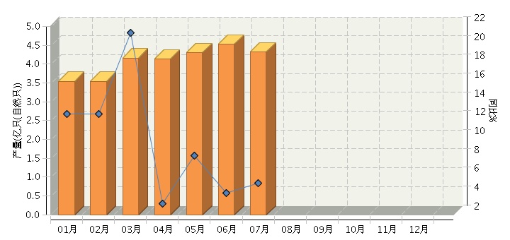 根據國家統計局公布數據,全國鋰離子電池行業累計完成產量28.73億只(自然只),同比增長8.33%。其中:7月份完成產量4.32億只(自然只),同比增長5.32%。2014年全國鋰離子電池行業月度產量及同比如上圖所示。