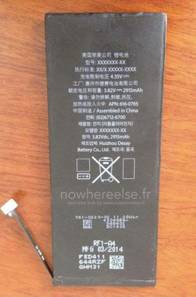 法國網站Nowhereelse.fr今日放出新圖,聲稱這是一塊來自5.5英寸iPhone 6的電池,圖中顯示電池容量為2915mAh,這一容量與上個月《Apple Daily》給出的消息一致。