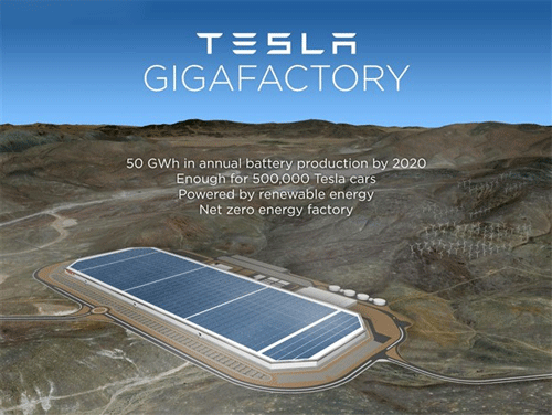據了解,位于美國內華達州特斯拉超級電池工廠Gigafactory占地面積將達到1000萬平方英尺,預計在2017年建設投產,同時規劃到2020年生產50 GWh的電池,并滿足50萬輛電動車的需要。此外,該工廠還將使用可再生能源,從而實現“零能耗”生產。