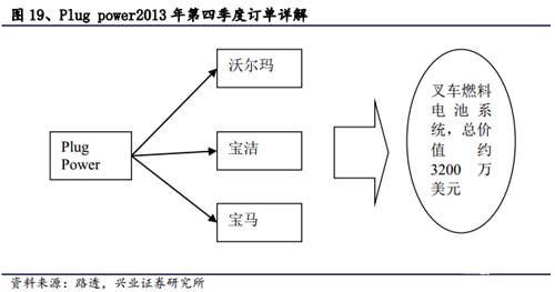 作為燃料電池叉車大廠商的Plug power公司在2013年第四季度接受了來自沃爾瑪、寶潔、寶馬等公司的訂單,訂單量較以往有較大增幅,截止目前,Plug power公司已累計提供4500多套叉車系統,且隨著2013年第四季度訂單的爆發,燃料電池在叉車領域的應用還將進一步擴展。