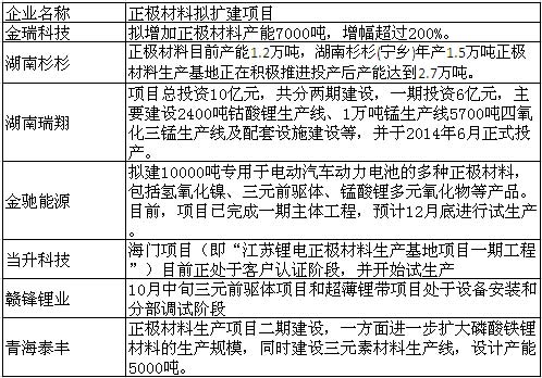 2014國內(nèi)主要正極材料廠家產(chǎn)能大盤點(diǎn)及下半年擬擴(kuò)建項目匯總