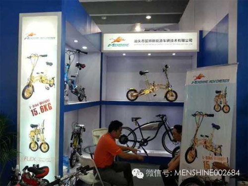 工作人員正在講解猛獅科技新能源電動(dòng)自行車