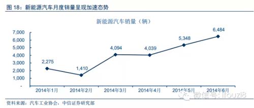新能源汽車月度銷量呈現加速態勢,預計年底有望達到月銷萬輛的水平。今年上半年新能源汽車累計銷售2.1萬輛,已經超過去年全年的1.7萬輛,而且月度銷量呈現加速態勢,其中6月單月銷量已經超過6000輛,預計年底有望達到月銷萬輛的水平。