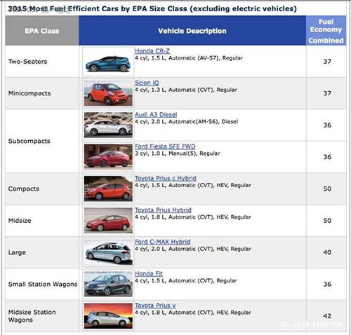 美國環(huán)保署(EPA)和我一樣,也特別糾結(jié)于車的能效水平,每年都會(huì)公布最省油車型、最耗油車型等多個(gè)榜單,順便說一下,雖然對(duì)美帝有各種看法,但是EPA的油耗數(shù)據(jù)比咱們工信部的靠譜得多,這卻是我不得不承認(rèn)的。一是因?yàn)槿思业臏y(cè)試工況更加接近真實(shí)情況,另一個(gè)原因是EPA比較“軸”,廠家一般不敢在油耗上造假,一旦被EPA核實(shí)造假,廠家面臨的將是天價(jià)的罰單。