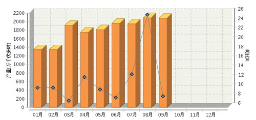 根據(jù)國家統(tǒng)計局公布數(shù)據(jù),2014年1~9月全國鉛酸蓄電池行業(yè)累計完成產(chǎn)量17036.77萬千伏安時,同比增長10.90%。其中:9月份完成產(chǎn)量2081.56萬千伏安時,同比增長8.36%。