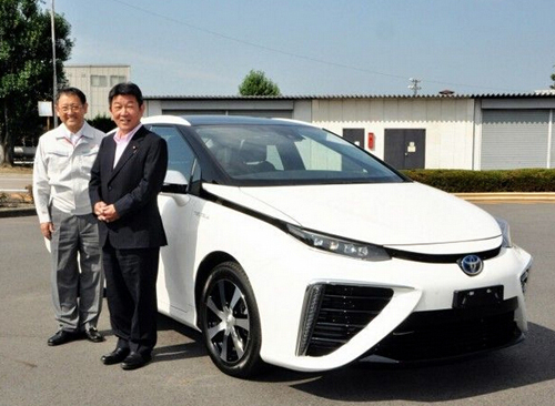 日本經濟產業大臣茂木和豐田社長豐田章男試駕FCV燃料電池汽車