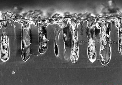 這個神奇的結構就是納米孔,麻雀雖小,五臟俱全。在陶瓷片層上一個納米級別的小孔內盛放電解質,電解質能在孔兩端的納米管電極之間傳輸電荷。目前的裝置還只是一個測試,但測試中這枚小個頭的電池表現良好。論文第一作者劉嬋媛(音譯)是馬里蘭大學材料科學與工程系研究生,她表示,小電池在12分鐘內就能充滿電,而且能夠反復充電上萬次。