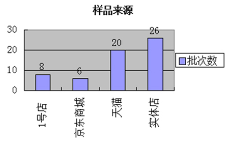 本次共監測移動電源產品60批次,其中34批次樣品來源于電子商務平臺,26批次樣品來源于實體店(包括:專賣店、超市、電子城等)。