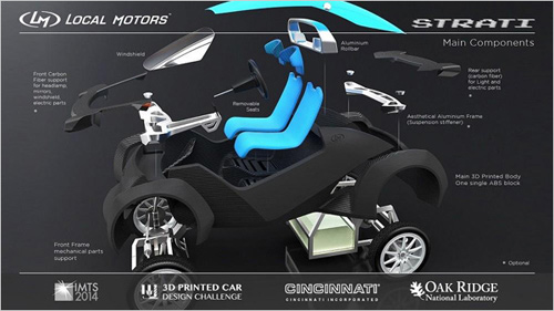 [摘要]在2014年于美國芝加哥舉行的IMTS國際制造技術(shù)展覽會上,號稱世界上第一輛3D打印電動汽車“Strati”(斯特拉蒂)就這么在與會者們的親眼見證下誕生了。
