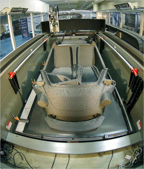 辛辛那提公司負(fù)責(zé)提供制造Strati使用的大幅面增材制造3D打印機(jī),其能夠打印3英尺×5英尺×10英尺(約合90厘米×152厘米×305厘米)的零部件。公司CEO安德魯-賈米森表示:“大幅面增材制造3D打印機(jī)可用于實(shí)際生產(chǎn),碳纖維增強(qiáng)ABS塑料的熔融沉積速度可達(dá)到每小時40磅(約合18公斤)。”