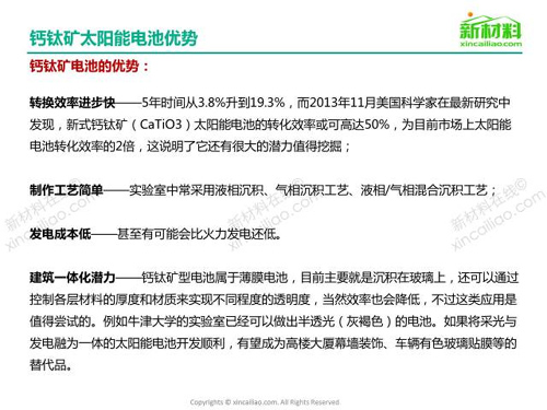 [摘要]作為太陽(yáng)能電池家族中的一員,鈣鈦礦太陽(yáng)能電池正慢慢嶄露頭角。鈣鈦礦太陽(yáng)能電池不僅擁有第一代太陽(yáng)能電池高轉(zhuǎn)化效率的特點(diǎn),還有第三代太陽(yáng)能電池薄膜、柔性化的特點(diǎn),可用于溶液法卷對(duì)卷生產(chǎn)。因此,鈣鈦礦太陽(yáng)能電池被認(rèn)作是最有前景的“冉冉新星”。