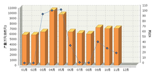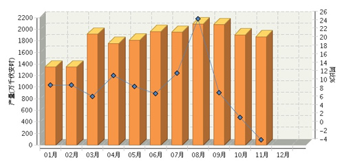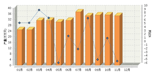 2014年1-11月,全國堿性蓄電池行業累計完成產量同比增長22.43%。其中:11月份完成產量同比增長23.75%。