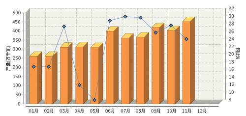 2014年1-11月,全國太陽能電池行業累計完成產量同比增長27.71%。其中:11月份完成產量同比增長25.04%。