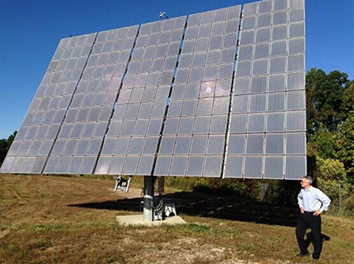 北卡羅萊納州漢德森(Henderson),斯科特-伯勒斯(ScottBurroughs)站在一塊Semprius的太陽能系統(tǒng)前