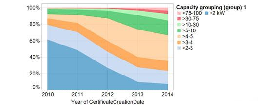 報告計算,澳大利亞安裝系統(tǒng)價格持續(xù)回落。截止2014年末,該國平均價格為每瓦1.60澳元(1.27美元)。