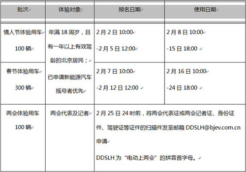 為進(jìn)一步推動(dòng)社會(huì)各界對(duì)電動(dòng)汽車的認(rèn)知,北汽新能源攜手綠狗租車,在北京開(kāi)展“電動(dòng)綠狗鬧京城 免費(fèi)租車賀新春”活動(dòng),即投入400輛純電動(dòng)汽車E150EV,供北京居民在情人節(jié)、春節(jié)各使用8天,以及在兩會(huì)期間,再提供100輛純電動(dòng)汽車供全國(guó)兩會(huì)代表、記者免費(fèi)體驗(yàn)。即日起,讀者均可登陸“北汽新能源京東旗艦店”(bqxny.jd.com)了解詳情,并報(bào)名參加8天免費(fèi)體驗(yàn)。