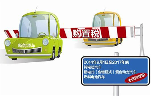 國務(wù)院常務(wù)會議審議決定,自2014年9月1日至2017年底,對獲得許可在中國境內(nèi)銷售(包括進(jìn)口)的純電動以及符合條件的插電式(含增程式)混合動力、燃料電池三類新能源汽車,免征車輛購置稅。截至2014年底,工業(yè)和信息化部、國家稅務(wù)總局已發(fā)布三批免征車購稅的車型目錄,有57家企業(yè)的377款車型列入目錄。