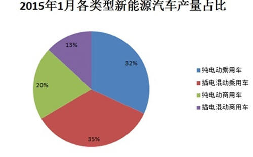 1月的產量中,純電動乘用車生產2108輛,同比增長近5倍,插電式混合動力乘用車生產2278輛,同比增長近7倍;純電動商用車生產1343輛,同比增 長6倍,插電式混合動力商用車生產870輛,同比增長近2倍。列入《免征車輛購置稅的新能源汽車車型目錄》前三批的新能源汽車生產5664輛,占1月產量 的86%。