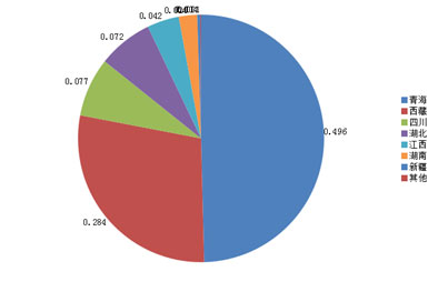 我國是鋰資源較豐富的國家。根據中國地質科學院礦產資源研究所的資料表明,目前我國擁有714萬噸鋰資源量,儲量383萬噸,主要分布在青海、西藏、新疆、四川、江西、湖南等省區。其中西藏和青海為鹽湖鹵水型,新疆、四川、江西、湖南等為花崗偉晶巖或花崗巖礦物型。