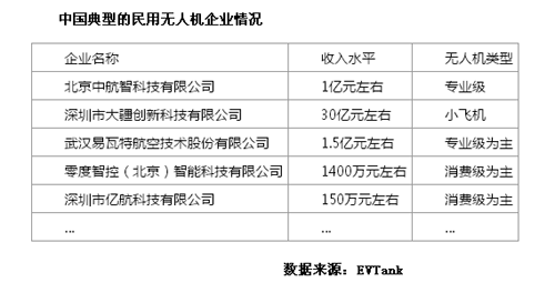 EVTank在該報告中對國內典型的民用無人機企業做了詳細的分析,以中航智、大疆、易瓦特、零度智控、深圳億航等為代表的無人機企業將迎來較好的發展機會。