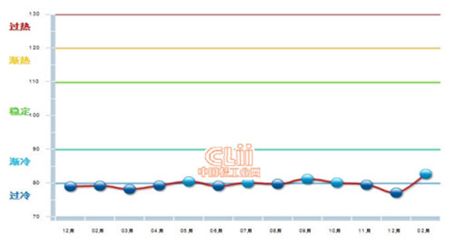 根據此前中國輕工業網發布的“中輕電池景氣指數”顯示,2014年12月前,我國電池行業始終在“過冷”與“漸冷”區間內徘徊;進入2015年,電池行業發展出現向好態勢,“中輕電池景氣指數”從2014年12月的77.12上漲到2015年2月的82.67。