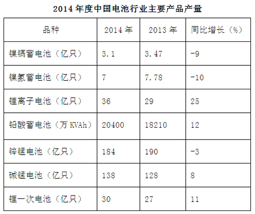 近日,中國化學與物理電源行業協會發布2014年我國電池行業相關數據。數據表明,2014年我國鋰離子電池共完成產量36億只,同比增長25%,成為電池行業產量增長最為迅猛的電池品種。