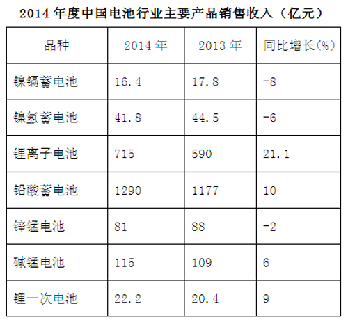 銷售收入方面,鉛酸蓄電池仍然以全年1290億元的銷售收入穩居榜首,但漲幅僅比去年增10%,較鋰離子電池21.1%的漲幅低11個百分點。