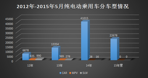 4、2012年-2015年5月新能源乘用車分車型銷售情況(單位:臺)